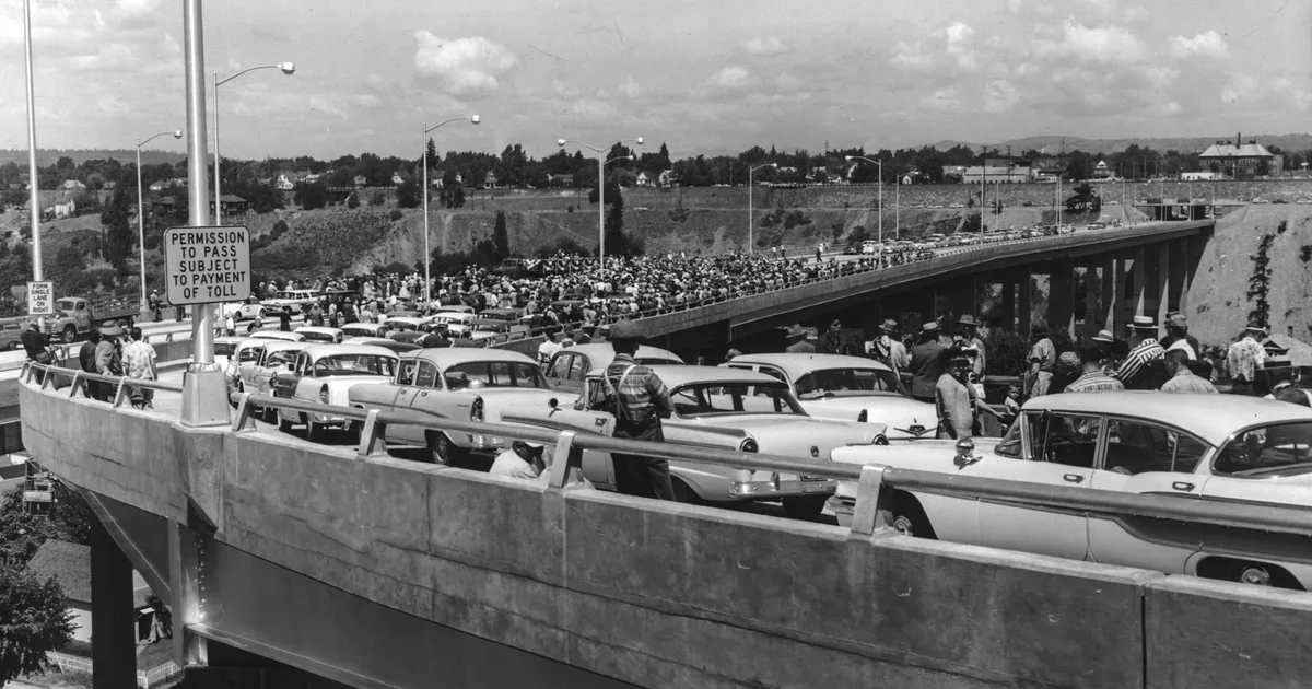 On July 1, 1958, a crowd gathered for the dedication and opening ceremony of the bridge. The bridge immediately took 40 percent of the traffic off the Monroe Street bridge after it opened.